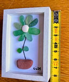 Piccole tartarughe e vaso con fiore eseguiti con "Sea glass".
