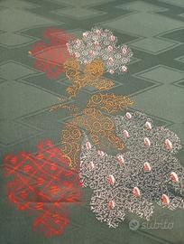 capo unico vintage in seta damascata con ricami realizzato mano, double face, senza chiusura, mai indossato