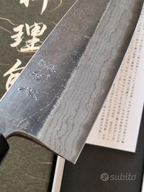 Esemplare totalmente artigianale, quindi ogni coltello è diverso da altri della stessa serie. Oggetto nuovo, vendo per esubero (colleziono coltelli giapponesi).