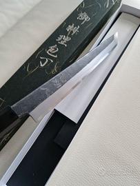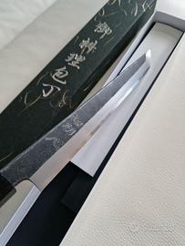 Esemplare totalmente artigianale, quindi ogni coltello è diverso da altri della stessa serie. Oggetto nuovo, vendo per esubero (colleziono coltelli giapponesi).