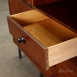 impiallacciato mogano con gambe in metallo.