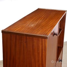 Highboard con ante battente e a ribalta, cassetti e vano a giorno in legno