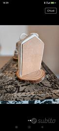 Decorazioni per casa (3 pezzi) Dimensioni 11x9 cm circa Materiali: legno (base), carta, cartoncino, metallo (chiave) Fatti a mano