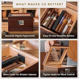 Humidor per Sigari in Cedro con Finiture in Ciliegio Fatto a Mano con Igrometro Anteriore Digitale - Tenuta (25-50 sigari)