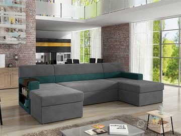 Divano-letto angolare a U, con due penisole provviste di box contenitore, in 9 originali colori moda, identico prezzo