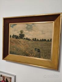 dipinto è "I papaveri" (Les Coquelicots) di Claude Monet, realizzato nel 1873. Quest'opera iconica dell'Impressionismo cattura un momento di serenità in campagna. Il quadro raffigura la moglie di Monet, Camille, e il figlio Jean, che passeggiano in un campo fiorito vicino alla loro casa ad Argenteuil, in Francia. Monet ha utilizzato pennellate rapide e vibranti, senza un disegno preliminare, per catturare gli effetti mutevoli della luce e l'atmosfera della scena all'aperto (en plein air). La composizione è strutturata da una linea obliqua formata dal percorso delle figure, che separa visivamente il campo di papaveri rigoglioso dal prato circostante. I papaveri sono rappresentati con semplici macchie rosse di colore, che emergono grazie a picchiettature che donano vivacità e un senso di profondità alla composizione. Il dipinto è conservato al Musée d'Orsay di Parigi.