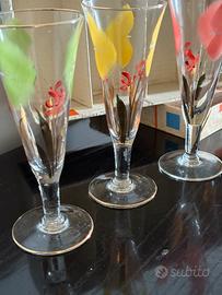 Finiture dorate e farfalle colorate Sei calici in vetro finissimo, smcora in scatola
