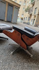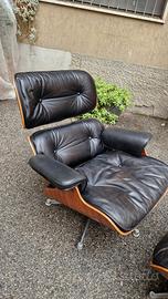 originale ICF, poltrona con pouf poggiapiedi in pelle nere in ottime condizioni.
