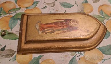 oggetto da collezionisti. icona antica capo culla Fiorentina anni 50' Angelo suonatore. articolo vintage in legno. dimensioni 27x15 cm. la ninna nanna funziona tirando la corda. ancora in buone condizioni, come da foto.