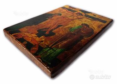 Icona antichizzata ed eseguita interamente a mano su legno.