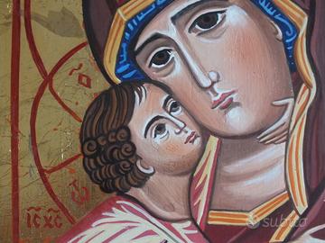 MADONNA DELLA TENEREZZA Icona dipinta a mano su tavola di legno da 2 cm di spessore , riproduzione di antica icona , con dorature con oro in foglia , 21 x 26 cm , 120 EURO CON SPEDIZIONE TRACCIATA