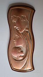 Vendo grande icona artistica, placcata in argento (marchio 21 g Argento) su supporto di legno, raffigurante la S. Famiglia.