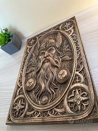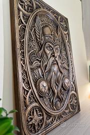 Vendo questa bellissima icona in legno raffigurante il volto di Odino in stile vichingo, interamente incisa con dettagli incredibili. Lavorazione artigianale con effetto anticato che dona carattere e profondità all’opera. Perfetta per chi ama la mitologia nordica, l’arte fantasy o semplicemente vuole un elemento decorativo unico e originale. Ideale da esporre su una mensola, scrivania o appesa al muro (può essere facilmente adattata).