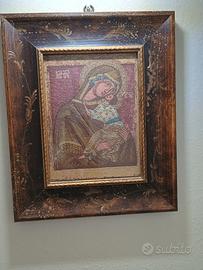 Vendo icona ricamata con il filo d'oro. Altissimo artigianato Umbro. La cornice molto particolare. Ottimo oggetto d'arredo. Possibile la spedizione.