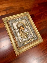 Questo prezioso quadro è un'icona religiosa raffigurante la Vergine Maria con Gesù Bambino.