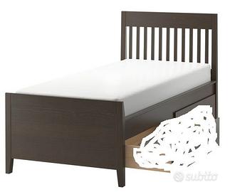 Struttura letto 90x200 cm, marrone scuro trattato con mordente. Eventuale montaggio con 30 euro in più. Previo accordi consegno a domicilio