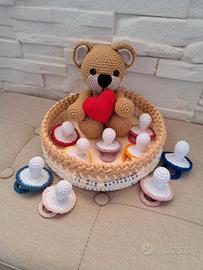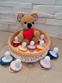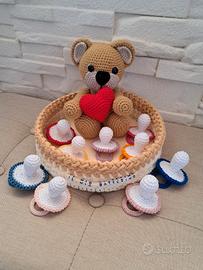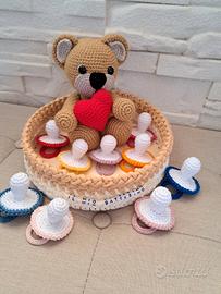 Bomboniere battesimo all'uncinetto. Idea unica e originale. Su ordinazione. Il prezzo si riferisce al costo di un ciuccio che è lievemente trattabile. Scrivetemi in privato per qualsiasi altra informazione.