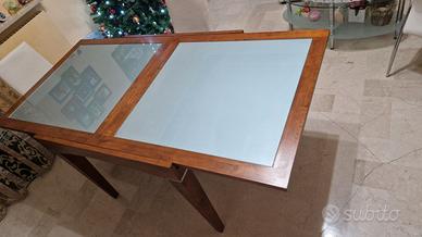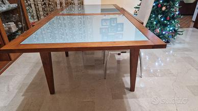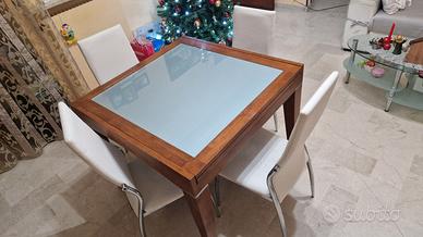 Inoltre, si vende tavolo allungabile con vetro color ciliegio, misure cm 97x97, abbinato alla parete.