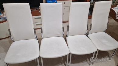 In regalo 4 sedie bianche come in foto, misure cm 45x42x100, con qualche segno di usura.