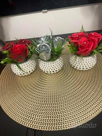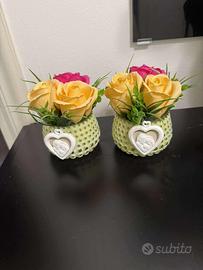 Decorazioni con le Rose Di Sapone che durano per anni. Il prezzo della decorazione con una rosa è di 7 euro invece con 3 rose 8 euro