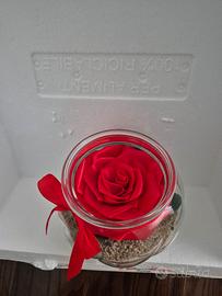 vaso in vetro con fiorr in tessuto fatta a mano