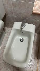 Wc con cassettone scarico + bidet come in foto usato ma senza scheggiature per ricambi o simili marca: IDEAL STANDARD colore bianco panna