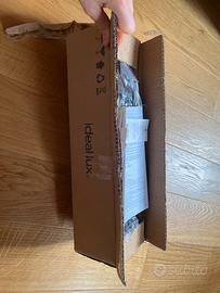 Lampada da parete IdealLux. Presenta difetti come si vede in foto a causa della colla, motivo del prezzo basso. Per il resto è nuova con cartellino integrato e sua scatola.