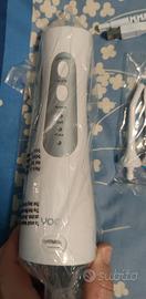 Vendo Idropulsore nuovo imballato, portatile a batteria ricaricabile, con 5 testine diverse, serbatoio capiente per passarlo su tutti i denti, si usa al posto di un filo interdentale e rimuove residui tra i denti e previene placca tartaro e carie.