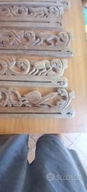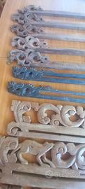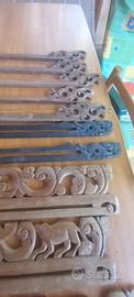 Per tessuti ikat o come sopraporta, d'epoca, originali. N.5 cm.70x12 spessore 1 circa con taglio per inserire tessuto/arazzo/divisorio. N.2 come sopra cm.76x6x1 legno più scuro, N.5 cm.77x7x1 senza taglio come arredo sopraporta o altro. 12 in totale in ottime condizioni vendo solo in blocco.