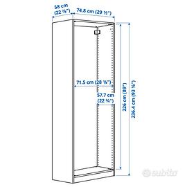 Vendo struttura guardaroba IKEA PAX colore grigio antracite, dimensioni 75x58x236cm Vendo per acquisto erroneo e sono impossibilitata a fare il reso. Il prodotto viene venduto smontato e non mai stato usato. La confezione è aperta. Il costo del prodotto in negozio è 85€. Ritiro a mano a Loreto, Villa Musone.
