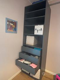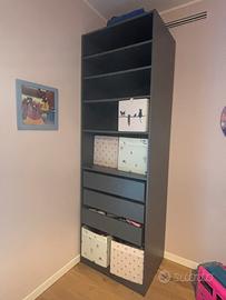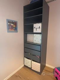 IKEA Armadio PAX grigio scuro 75 cm senza ante con 5 ripiani con altezze modificabili, 3 cassetti grandi. Incluse 4 ordinette. Usato poco, comprato 1 anno fa. 85€ prezzo armadio + 75€ ripiani+ 90€ cassetti= 250€. Senza Ordinette comprese (costo totale 4 ordinette 28€). Vendo tutto a 85€ Larghezza: 74.8 cm Larghezza struttura: 75 cm Profondità: 58.0 cm Altezza: 236.4 cm Profondità struttura: 58 cm Altezza struttura: 236 cm