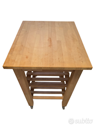 Ikea BEKVÄM Carrello cucina con 2 ruote e 2 piedini, legno di faggio, misura tavolino 58x50 cm, altezza 85 cm, due ripiani. Alcune macchie sul piano d'appoggio superiore, non presenta altri difetti, ruote funzionanti.