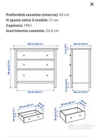 È in legno massiccio, un materiale naturale caldo e resistente. i cassetti sono stati rinforzati con dei supporitnin plastica misure nelle foto Ritiro di persona in almeno 2 peesone capaci di trasportare il mobile no perditempo