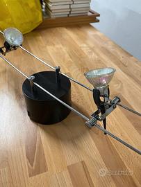 Ikea Cittra 4 realizzata nel 1994. Design vintage con 4 faretti alogeni. Il binario misura 90 cm di lunghezza x 7,5 cm di larghezza x 23 cm (distanza dal soffitto). Il diametro della piastra a soffitto è di 12 cm.
