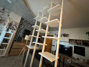 Vendo seguente scaffalatura, composta da 4 montanti e 3 colone di 4 ripiani. La configurazione ha un totale di 12 ripiani, posizionabili all’altezza che si preferisce. Ogni ripiano misura: 40cm x 36cm La composizione è circa 130cm di larghezza e l’altezza è regolabile. Tutto come nuovo PREZZO: 200 euro (posso portarla fino a casa vostea se serve)