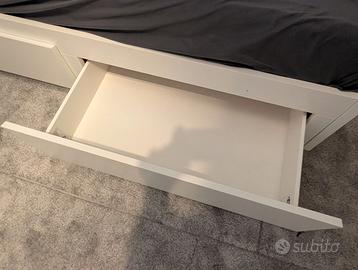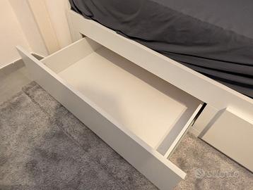 I due grandi cassetti integrati offrono ampio spazio per riporre piumini, cuscini e lenzuola, mantenendo tutto in ordine e a portata di mano.