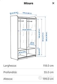 Vendo combinazione guardaroba modulare IKEA HAUGA, acquistata nel 2021, in ottime condizioni.
