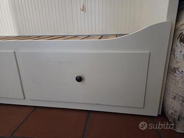 Vendo IKEA HEMNES – Struttura letto divano con 3 cassetti, colore bianco, in ottime condizioni. È un mobile super versatile: divano di giorno, letto singolo oppure letto matrimoniale quando si estrae la base. Perfetto per camerette, stanze degli ospiti o piccoli spazi. ⭐ Caratteristiche principali Modello: HEMNES (cod. 903.493.26) Colore: Bianco Misure: 80x200 cm (diventa matrimoniale estraendo la base) 3 cassetti molto capienti per biancheria, cuscini, giochi, ecc. Struttura robusta e facile da pulire Struttura letto divano 3 cassetti integrati Per altre informazioni potete cercare su Google la pagina IKEA del prodotto "IKEA Hemnes struttura letto divano" Usato pochissimo, tenuto benissimo, nessun difetto strutturale. Venduto completo di tutti i pezzi, istruzioni di montaggio e foto esplicative. 📍 Solo ritiro a mano! Zona: Bari – zona centrale