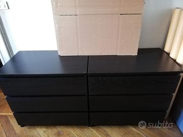 B - 2 x cassettiere MALM, 3 cassetti (81x49x78), nere; discreto stato
