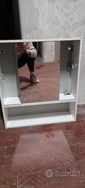 mobiletto contenitore con specchio per bagno. Specchio scorrevole, lateralmente 2 piani in vetro. dim:60x60x20