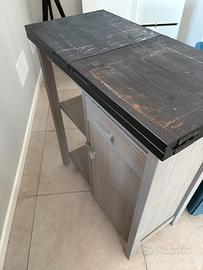 Colore: Struttura grigio chiaro/decapato con piano superiore scuro/nero (come da foto).