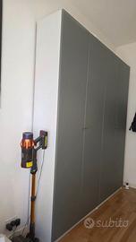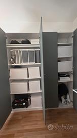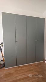 Vendo armadio PAX larghezza 202 cm × altezza 230 cm, profondo 35 cm, completo di ante REINSVOLL colore grigio-verde (look moderno e opaco) e 6 ripiani inclusi.