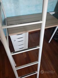 Causa trasloco si regala struttura letto Vitval In ottime condizioni, solo un'ammaccatura come da foto e usura antiscivolo delle scale dovuta al normale uso. (Scrivania non in vendita.) Prezzo Ikea euro 299, si vende a 120 euro. Si ritira già smontato fino al 2/4.
