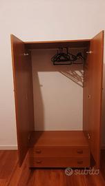 The wardrobe is organized in a very practical way: Upper part: Two hinged doors with ample internal space for hanging clothes. Design: Clean, minimalist lines with matching integrated handles. Details: Brand: IKEA. Finish: Oak or beech effect (light wood). Condition: Used, very well maintained. Style: Scandinavian / Modern.