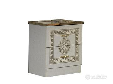 Finiture di Prestigio: la combinazione di un raffinato color beige con i dettagli dorati applicati sui profili e sulle decorazioni frontali offre un contrasto caldo e lussuoso, tipico dell’arredamento di alta classe.
