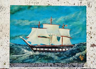 Il dipinto è un acrilico su tela di dimensioni 30x40 cm che cattura il fascino intramontabile della navigazione classica. L'opera si distingue per un uso vivace del colore e una gestione dinamica delle forme.
