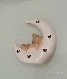 Perfetto come decorazione elegante o come bomboniera per nascite, battesimi e comunioni, questo orsetto con luna LED porta fascino e dolcezza in ogni cameretta o evento speciale.