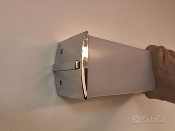 Vendesi apparecchio di illuminazione applique da interni Quadra ap1 VESOI, made in Italy, struttura in alluminio verniciato bianco con laterali in policarbonato cromato, diffusore in policarbonato satinato bianco. Dimensioni lunghezza cm 39 altezza cm 9 profondità cm 8. Lampada da 24 w con attacco 2G 11 2. L’apparecchio è nuovo, è reduce da chiusura attività.