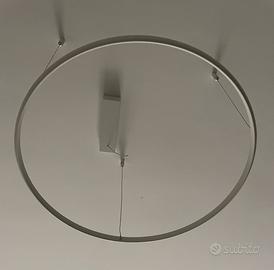 Hulahoop small sospensione anello bianco Ø60, led 30 watt, 3000k Un elemento dal design moderno e originale, perfetto per la camera, la cucina e soggiorno living Lampada a sospensione con rosone e montatura in metallo verniciato a polveri con finitura bianca. Diffusore in gomma opale. Cavi in acciaio con supporti a soffitto. Cavo elettrico in pvc trasparente durata utile LED 17.500 h rosone aggancio diametro 23 x 6.5 cm sessore anello 2 cm Diametro 61 cm