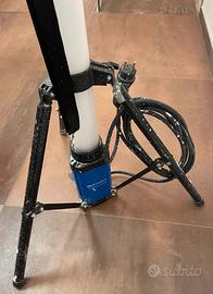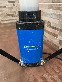 Lampada su stabile treppiede (alt. 150 cm) facilmente spostabile tramite corda, LED 11.000 lumen di potenza luminosa e 6.500 Kelvin, 100 W ideale per cantiere o altro (esterni e interni). Cavo lungh 5 m + una presa Schuko integrata alla base. Peso: 5,5 kg, classe di efficienza energetica E